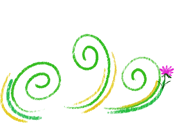 A hand-drawn image featuring vibrant green spiral shapes and a purple flower. This image evokes spring and energy, great for blog accents or creative digital use.